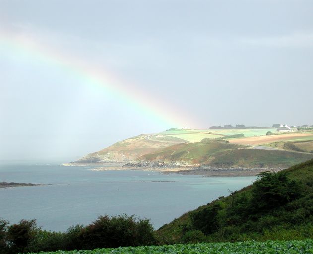 Saint-Jean-du-Doigt : vue de l'ensemble fortifié de la falaise depuis PlougasnouImmatriculation