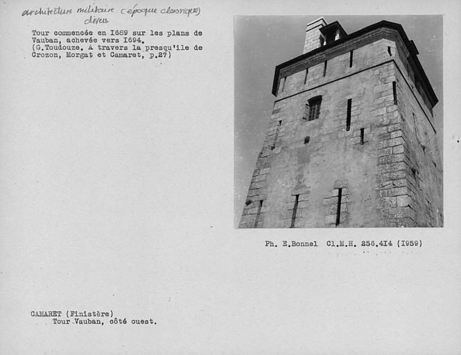 Vue de la Tour Vauban : élévation Ouest, 1959Immatriculation