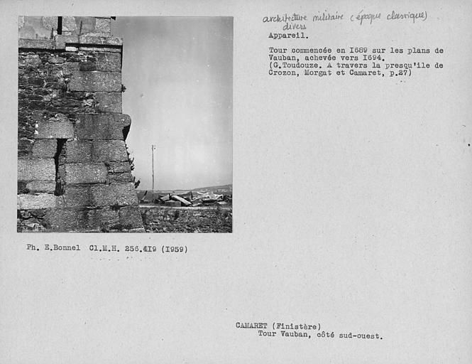 Vue de la tour Vauban : détail de l'angle Sud-ouest, 1959Immatriculation
