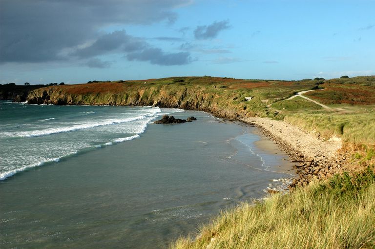 Vue générale de la plage des Blancs Sablons vers le nord : des fortifications de différentes époques sont disséminées dans les dunes (état en 2006)Immatriculation