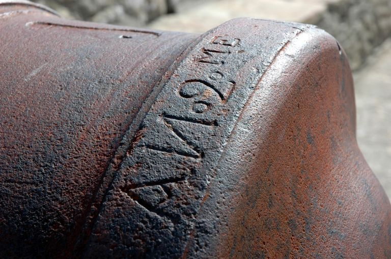 Vue de la pièce d'artillerie : détail de l'inscription sur la plate-bande de culasse (état en 2004)Immatriculation