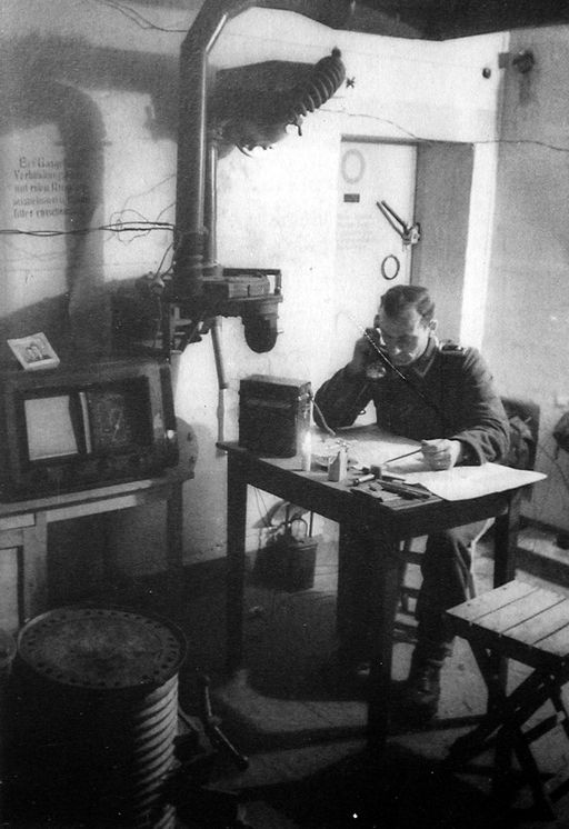 Image d'illustration de la vie quotidienne dans les ouvrages du Mur de l'Alantique : poêle type WT 80, radio, ventilateur, porte blindée 19P7, mobilier classique... (collection particulière)Immatriculation