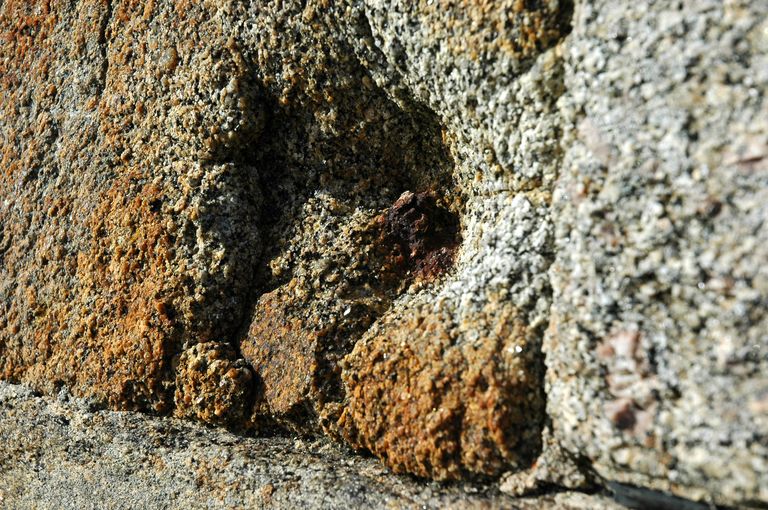 Elévation Sud : détail. Les projectiles en rouillant ont fait éclater le graniteImmatriculation