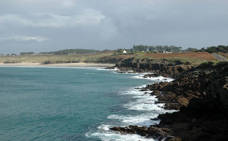 Vue de la plage des Blancs Sablons depuis la presqu'île de KermorvanImmatriculation