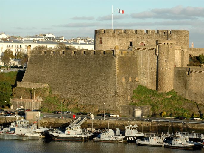 Vue depuis le Jardin des Explorateurs : bastion Sourdéac et tour Azénor enveloppant le donjonImmatriculation