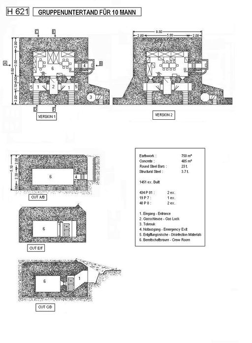 Plan d'un bunker - abri de type 621 pour deux groupes de combat (dessin : Patrick Fleuridas)Immatriculation