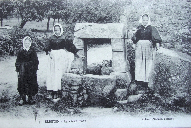 Carte postale vers 1910. Puits de la métairie de Kercadio.Immatriculation