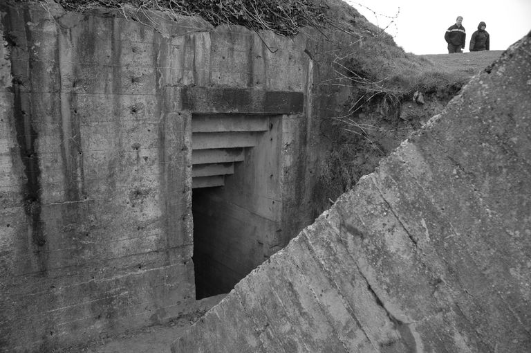 Vue de la batterie de Grandcamp-Maisy, pointe du Hoc : entrée de l'abriImmatriculation