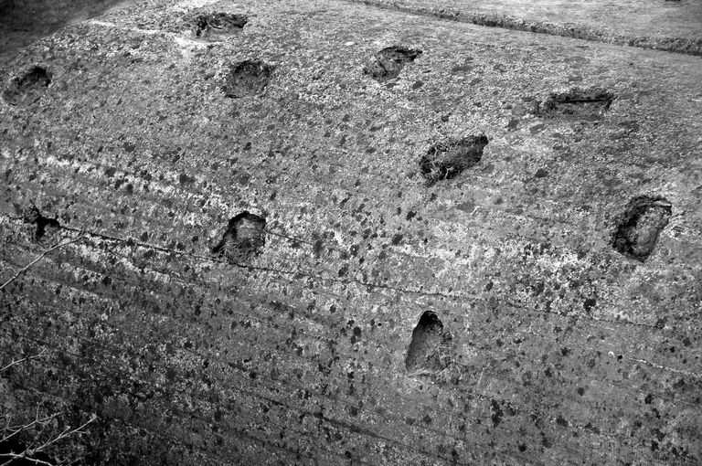Vue du poste de direction de tir de la batterie de Longues-sur-Mer : détail du traitement du bétonImmatriculation