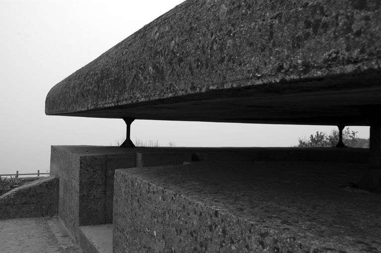 Vue du poste de direction de tir de la batterie de Longues-sur-Mer : détail de la dalle de couverture de l'observatoireImmatriculation
