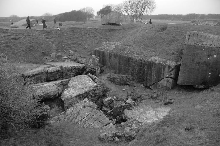 Vue de la batterie de Grandcamp-Maisy, pointe du Hoc : blockhaus ruinéImmatriculation