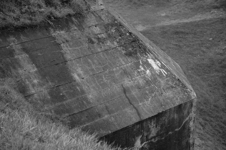 Vue de la batterie de Grandcamp-Maisy, pointe du Hoc : angle d'un abriImmatriculation