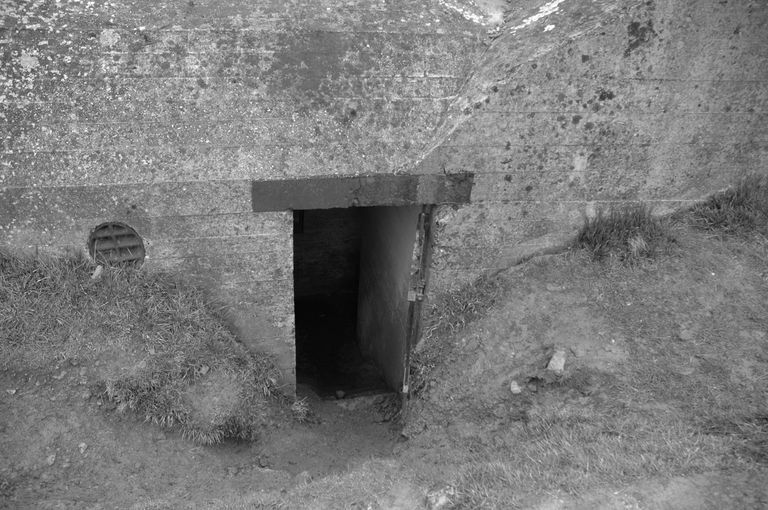 Vue de la batterie de Grandcamp-Maisy, pointe du Hoc : entrée d'un abriImmatriculation