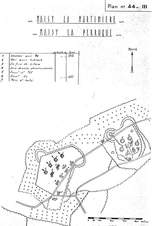 Plan de la batterie de Maisy-la-Martinière et Maisy-la-Perruque (n° 44 III), rapport Pinczon du Sel, vers 1946-1947, Service Historique de la Marine, VincennesImmatriculation