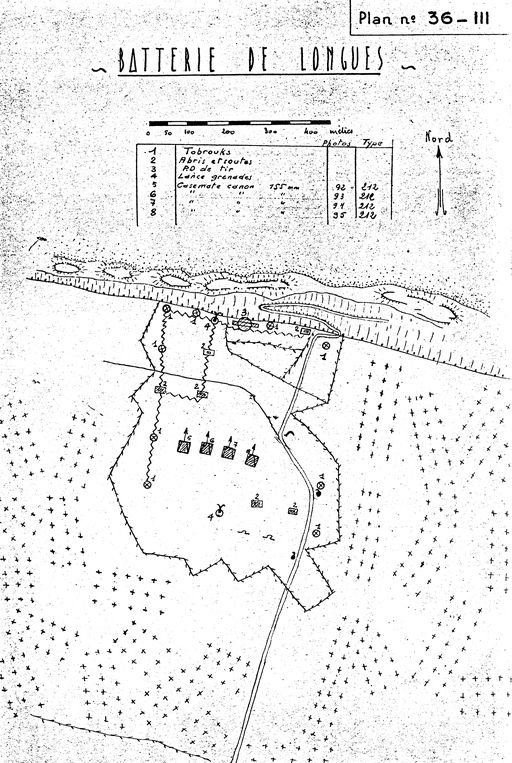 Plan de la batterie de Longues-sur-Mer (n° 36 III), rapport Pinczon du Sel, vers 1946-1947, Service Historique de la Marine, VincennesImmatriculation