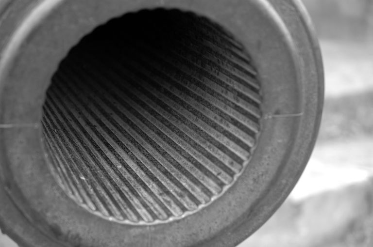 Vue du tube rayé du canon de l'une des quatre casemates de la batterie de Longues-sur-Mer (casemate n° 2 depuis l'est)Immatriculation
