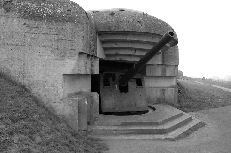 Vue générale de l'une des quatre casemates de la batterie de Longues-sur-Mer (casemate n° 3 depuis l'est)Immatriculation