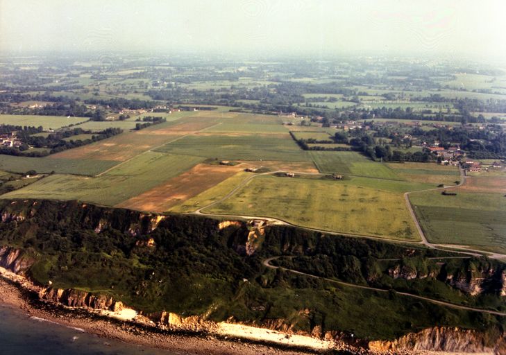 Vue aérienne oblique de la batterie de Longues-sur-Mer, 1994. (Source Inconnue, N° 462049)Immatriculation