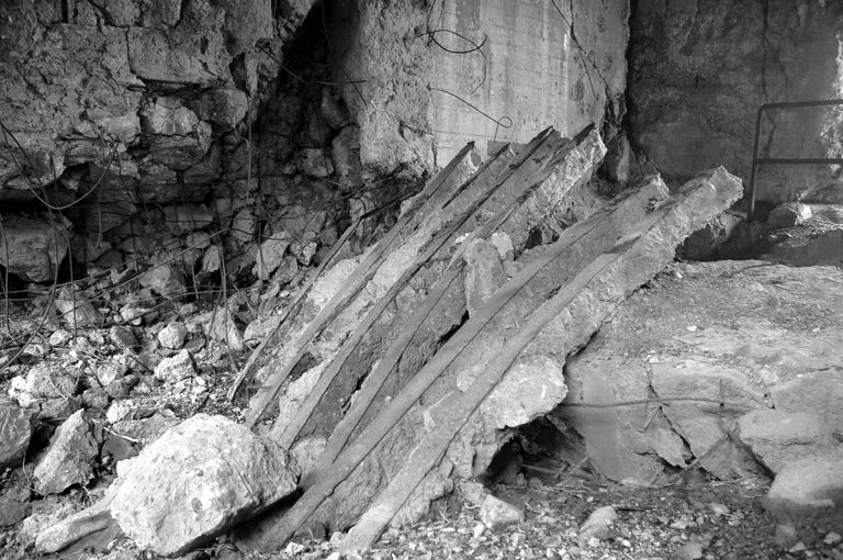 Vue intérieure de l'une des quatre casemates de la batterie de Longues-sur-Mer (casemate est en partie ruinée)Immatriculation
