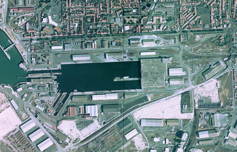 Vue aérienne verticale de la base de sous-marins de La Rochelle La Pallice (orthophotographies littorales)Immatriculation