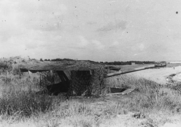 Vue d´un canon antichars de 50 mm camouflé en encuvement, ensemble fortifié dit "Ida", Ars-en-Ré. (Service Historique de la Marine, Vincennes, II Doc. 5, n° 153)Immatriculation