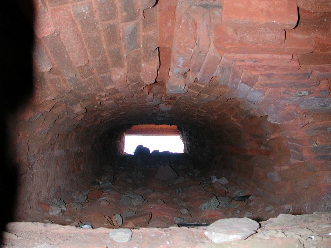 Vue du couloir de chauffe des boulets (état en 2002). Il est construit en brique réfractaireImmatriculation