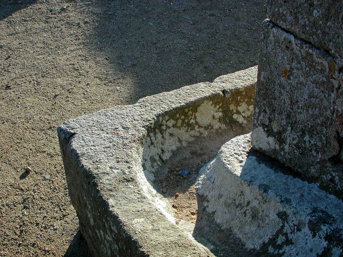 Vue de la goulotte de reception en granite des boulets rouges (état en 2002)Immatriculation