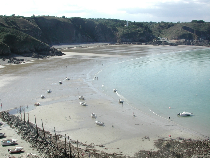Vue de la 1ère rangée de pieux sur un enrochement, servant de digue pare-lames, face au largeImmatriculation