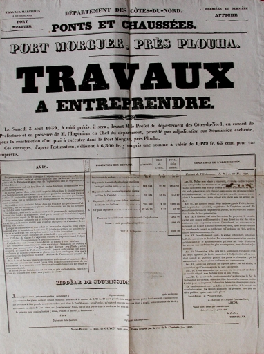 Soumission des travaux pour la construction du quai et du parapet de Port Moguer, 1839 (AD 22)Immatriculation