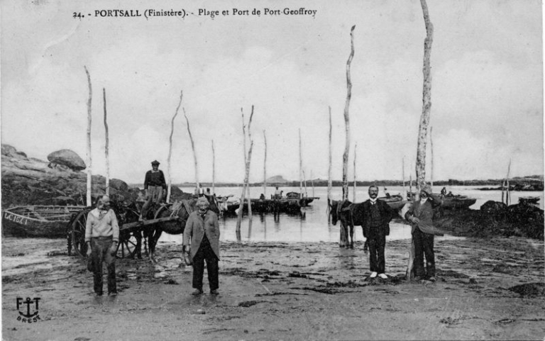 Le port Geffroy à Portsall en Finistère : amarrage traditionnel des goémoniers sur pieux (collection particulière)Immatriculation