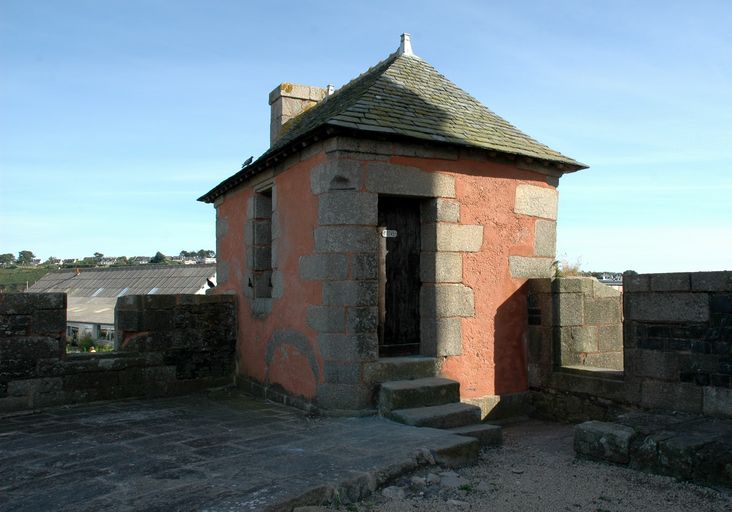 Vue du corps de garde du pont-levis (un deuxième corps de garde, identique, se dressait en pendant de l'autre côté de la batterie circulaireImmatriculation