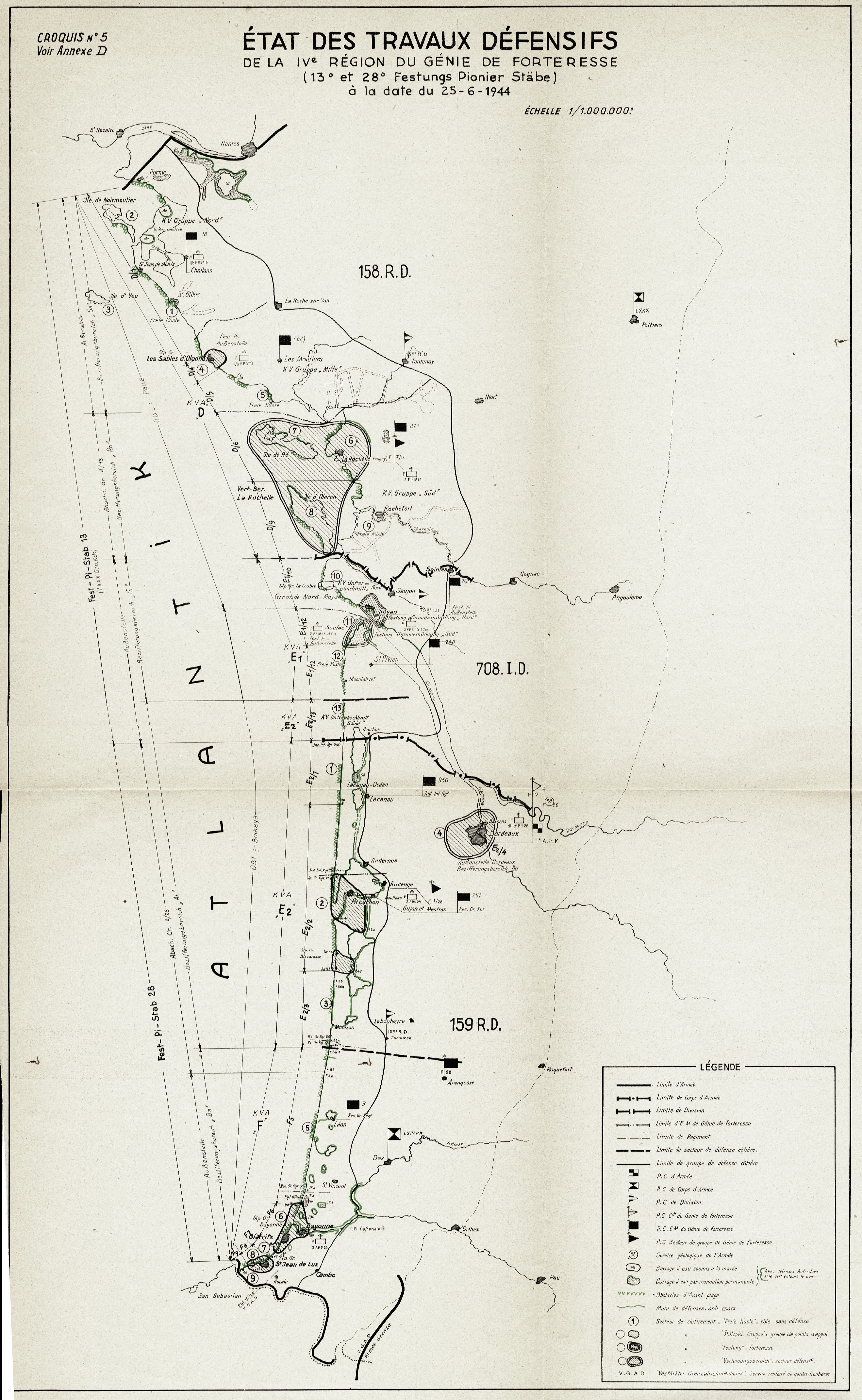 Carte de l'état des travaux défensifs de la IVe région du génie de Forteresse (13e, et 28e Festungs Pionier Stäbe) à la date du 25 juin 1944Immatriculation