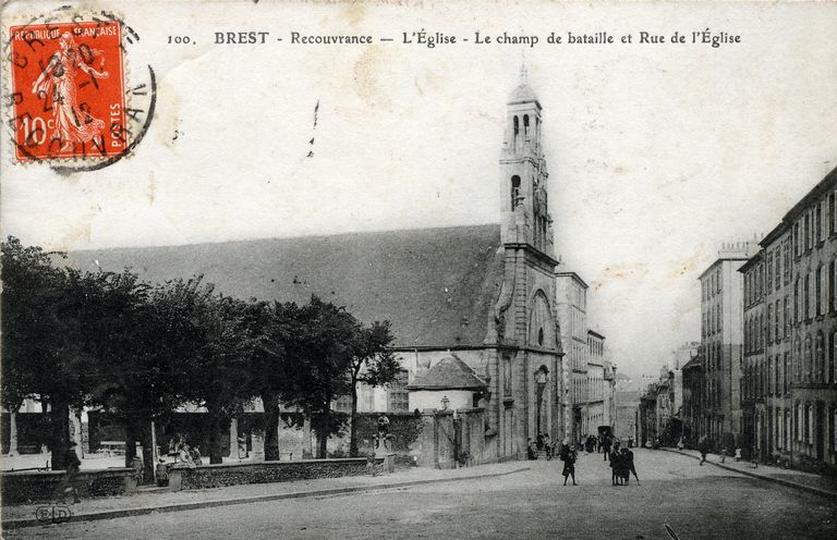 Vue de Brest : quartier de Recouvrance, le champ de Bataille et la rue de l'Eglise. Carte postaleImmatriculation
