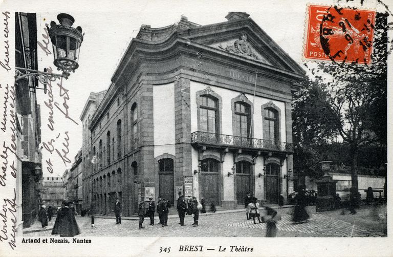 Vue de Brest : le théatre, carte postale (Artaud et Nozais, Nantes)Immatriculation