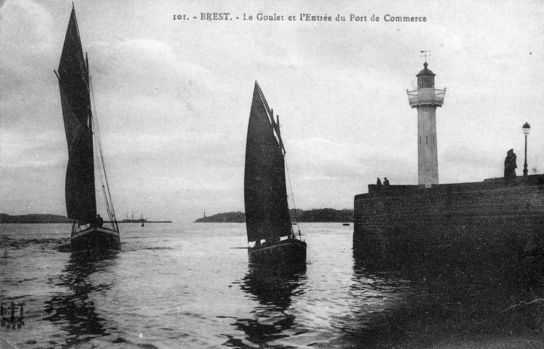 Vue de Brest : l'entrée du port de commerce. En arrière-plan : le goulet de Brest. Carte postaleImmatriculation