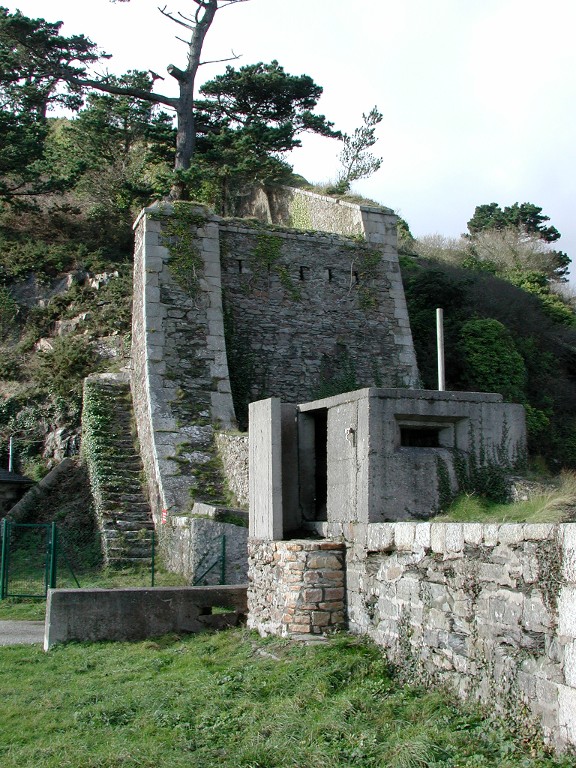 Vue de la branche tombante orientale au niveau de la batterie basse du Mengant (état en 2003). Au premier plan, bunker-poste d'observation et de tir situé à l'entrée de la batterie basseImmatriculation