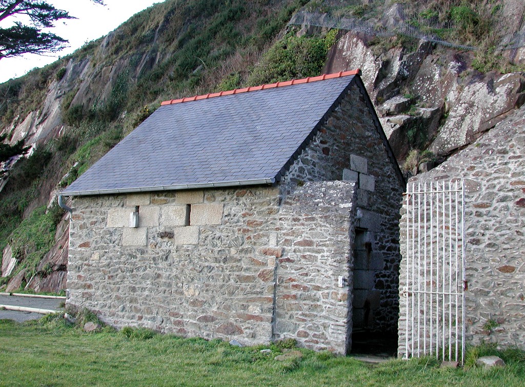 Vue de l'un des bâtiments de la batterie basse du Mengant : magasin à poudre avec ses évents d'aération ? (état en 2003)Immatriculation