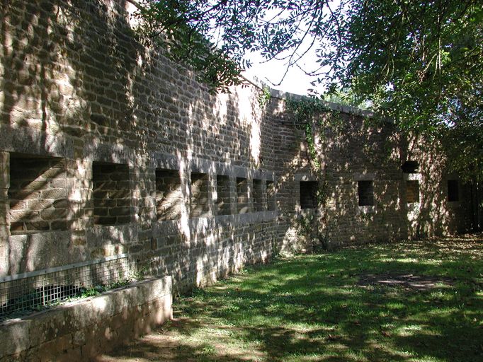 Vue du fort du Dellec : mur d'enceinte percé de créneaux de fusilladeImmatriculation
