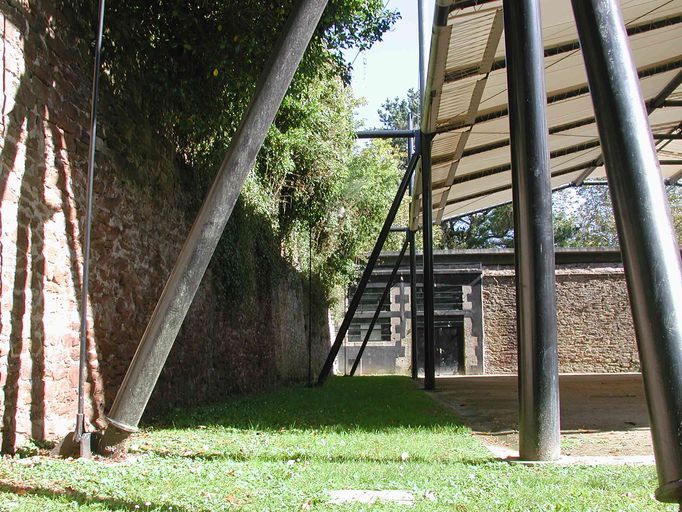 Vue du fort du Dellec : structure légère et toile assurant l'étanchéité de l'espace de la caserne aujourd'hui réhabilitéImmatriculation
