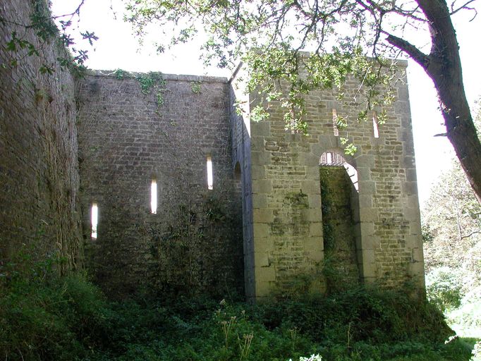 Vue du fort du Dellec : fossé sec flanqué par un bastionnet percé de créneaux de fusillade et doté d'un mâchicoulis ou créneau de piedImmatriculation