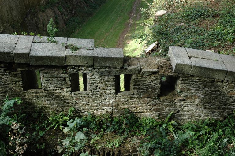 Vue de l'ouvrage à cornes de Quéliverzan : créneaux de fusilladeImmatriculation
