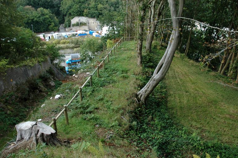 Vue de l'ouvrage à cornes de Quéliverzan : ancienne plateforme d'artillerieImmatriculation