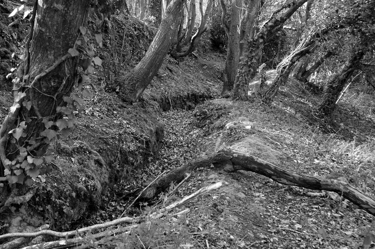 Vue des vestiges du réseau de tranchées situé dans les bois de KervallonImmatriculation
