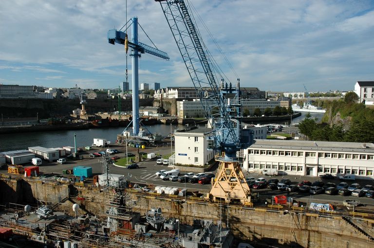Vue générale de l'arsenal de Brest : au premier plan, la forme de TroulanImmatriculation