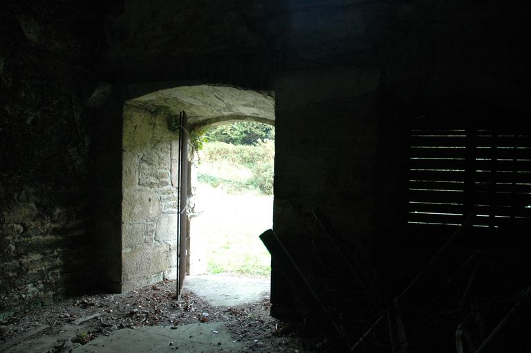 Vue du fort de Penfeld : exemple de caserne voutée avec entresol sur corbeaux accessible par une échelle. La pièce dotée d'une cheminée au rez-de-chaussée comporte une porte et deux baies ouvrant sur la place d'armesImmatriculation