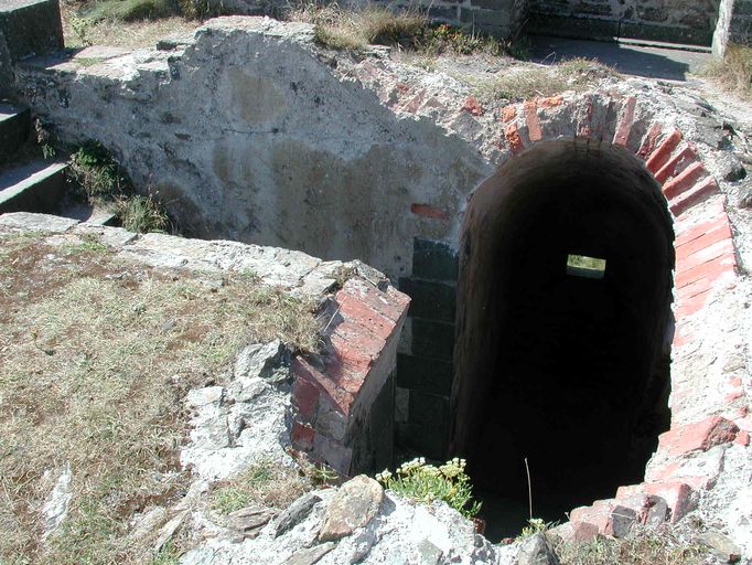Vue du réduit de batterie de côte de l'île de l'Aber : terrasse, escalierImmatriculation