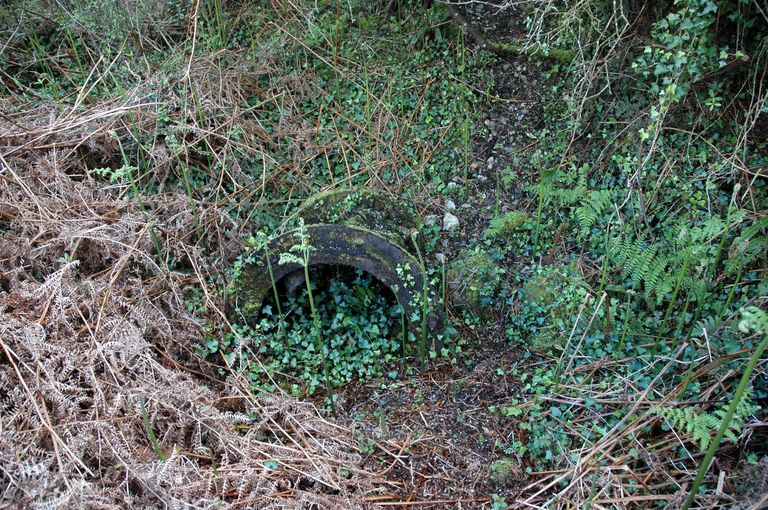 Au bord du chemin, vue d'un affût pour canon antiaérien de la batterie de la pointe des Espagnols (état en 2005)Immatriculation