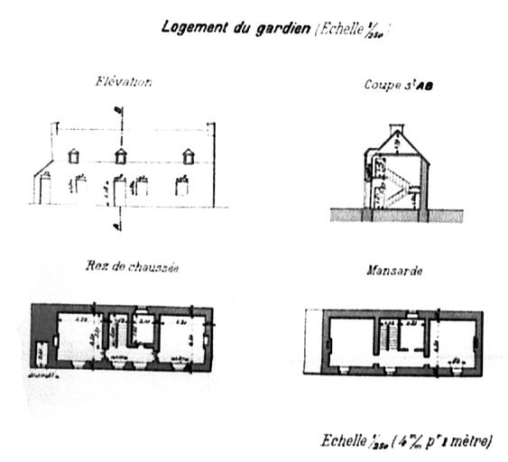 Plan et coupes du logement du gardien de la batterie du fort de mer, Direction d'Artillerie du génie de Brest, 1893, par le colonel Directeur d'Artillerie : CollombImmatriculation