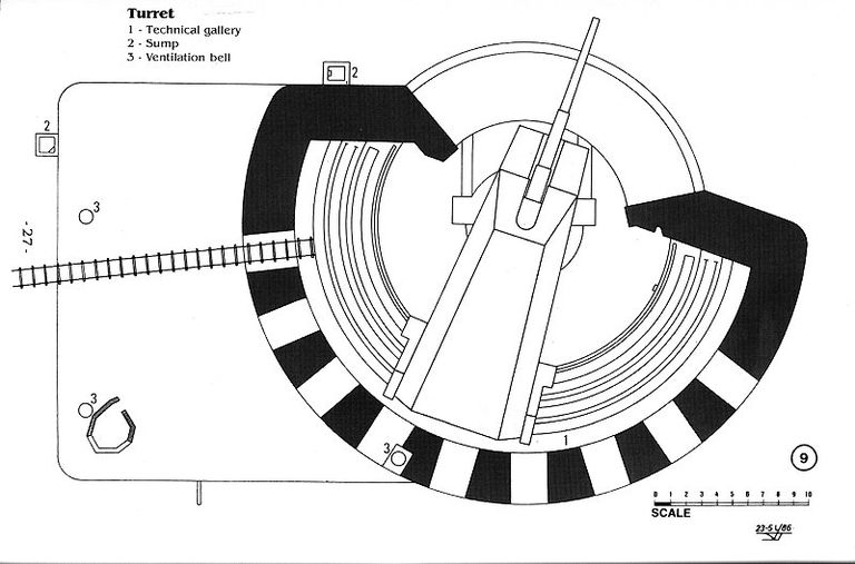 Plan du niveau +1 d'une des casemates de la batterie Todt (Pas-de-Calais). Dessin Yannick DelefosseImmatriculation
