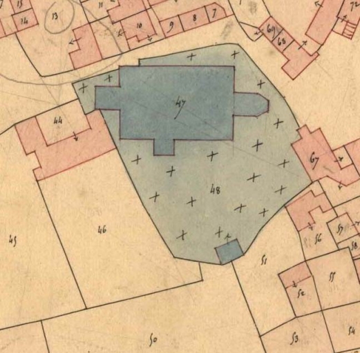 Plan-masse. Extrait du cadastre de 1837, section K 1, détail (A.D. Finistère, 3 P 203)Immatriculation